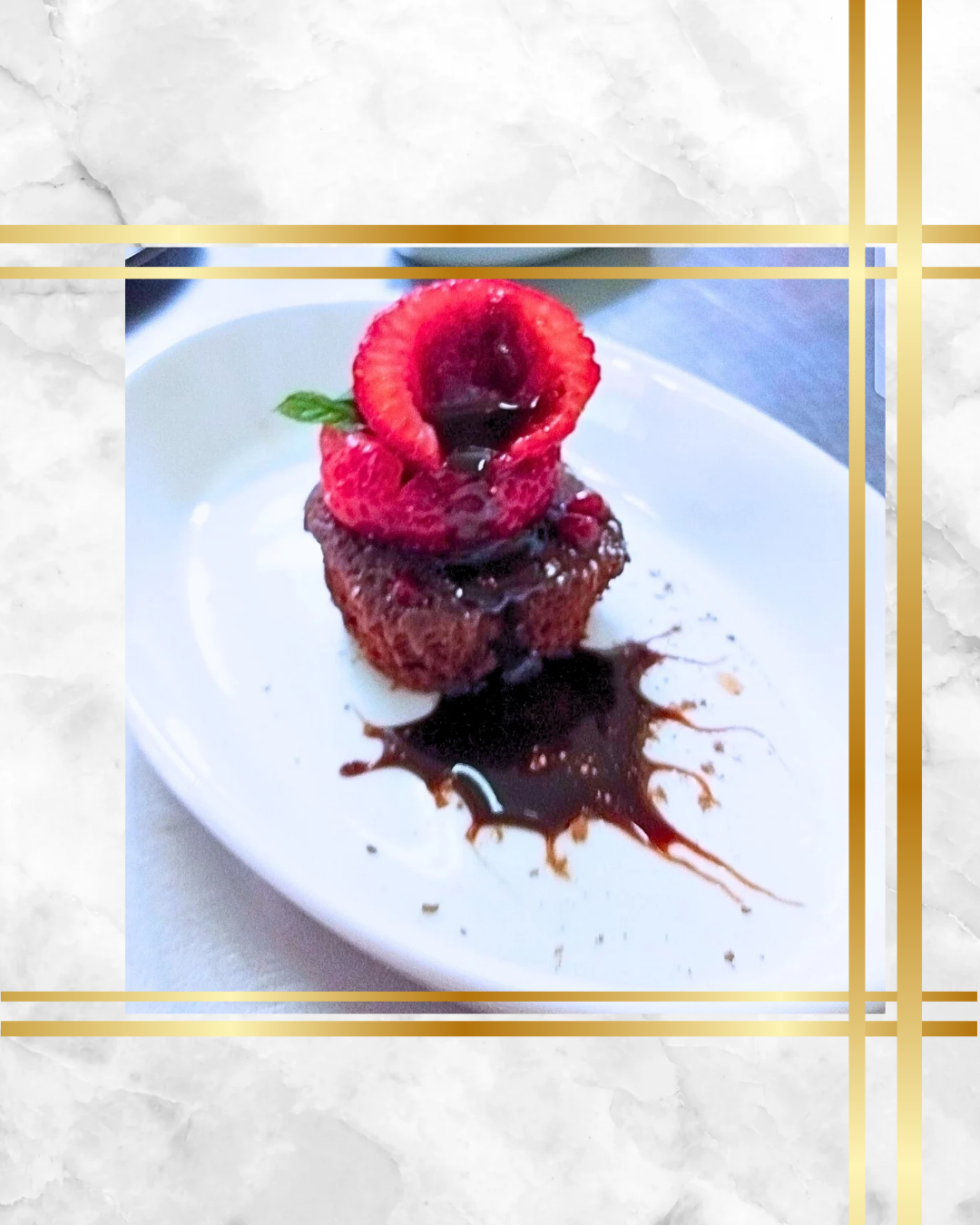 Es un volcán con un lago de chocolate que cae desde la punta de la montaña de fresas