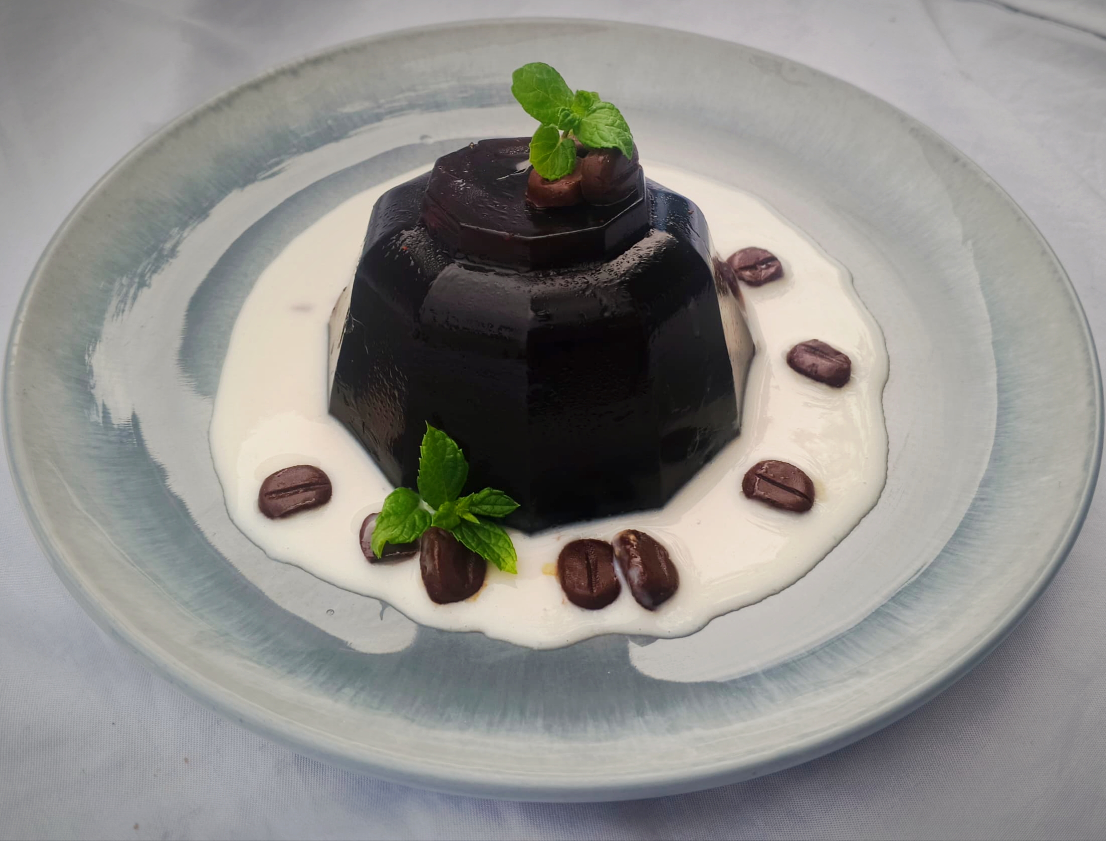 Amanecer de café (Gelatina de Café Rellena de Mousse de Café con Salsa de Vainilla)