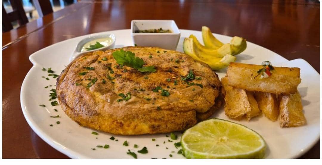 En una sartén antihaderente colocamos una parte de los huevos batidos y armamos en capas queso, plátano y el guiso de pepitonas, pasamos a un plato llano y repetimos el procedimiento, en la sartén colocamos huevos, queso, platanos y pasamos lo que habíamos colocado en el plato de nuevo al sarten y terminamos de cocinar por ambos lados, apagamos y servimos.