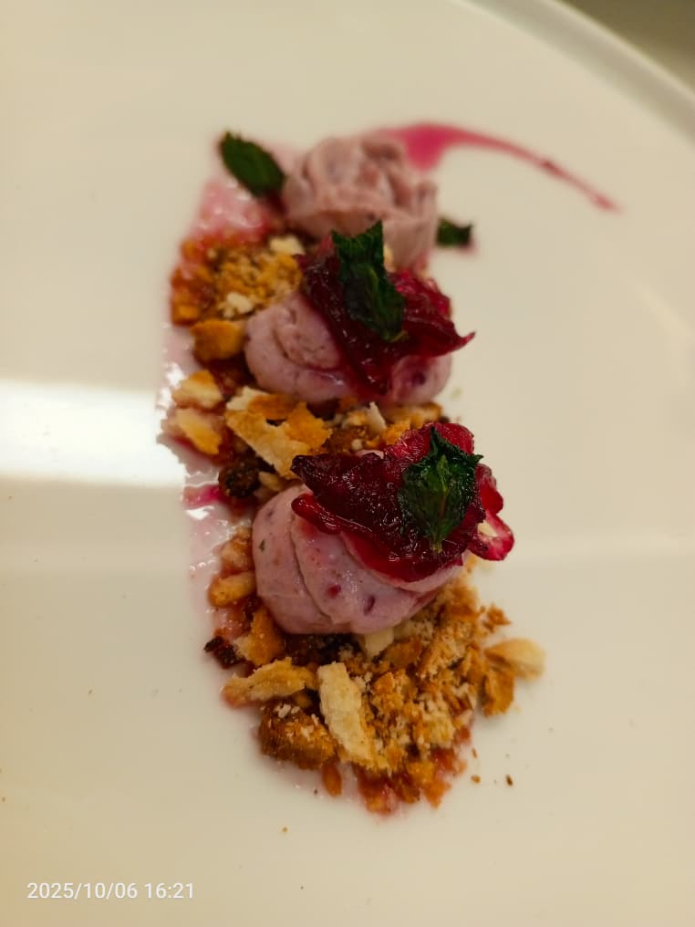 Procedemos a triturar las moras con azúcar, agregar el agua, la infusión de frutos rojos, dejar reducir hasta que quede espeso, agregar a la ricota con la salsa de vino tinto McCormick, reservar, reposar por 15 min y agregar a la ricotta, colar y formar una crema sin grumos, bonita y elegante.En un bowl agregar la Maizina Americana, harina de trigo, manteca, yogurt, la sal, amasar y de ser necesario hidratar con yogurt, solo si es necesario, tender a 2 mm y colocar en una bandeja con un sil pat, hornear hasta que la galleta dore retirar, reposar y convertir en tierra (polvo).