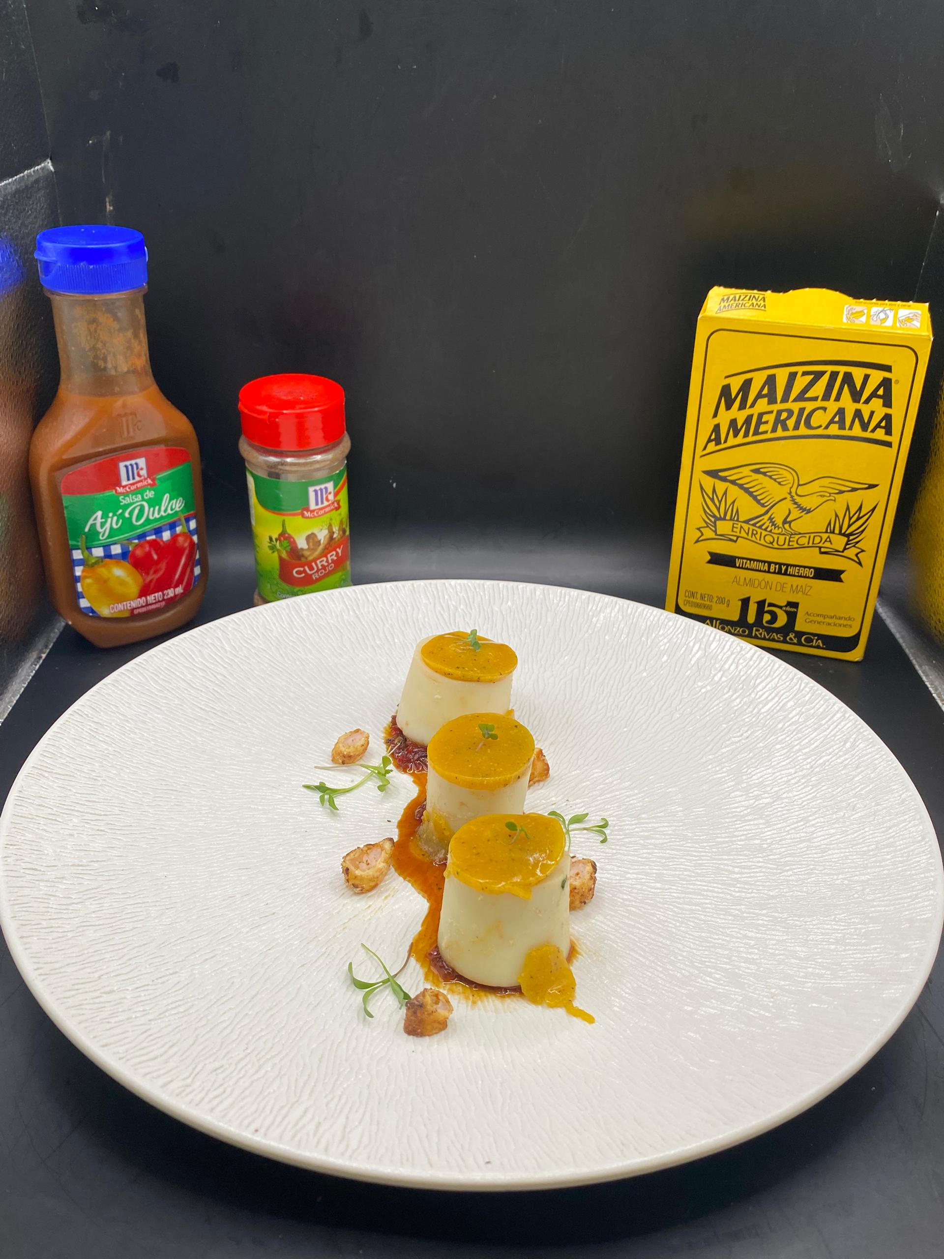 4- Sazonar camarones limpios para crocante con sal pimienta McCormick y ajo. De igual manera sazonar la fecula de maíz (Maizina Americana) con curry rojo, sal y pimienta negra McCormick. Hacer una tempura con agua y fecula de maíz (Maizina Americana), Precalentar aceite a 180° pasar los camarones por la fecula ,luego la tempura y de último el casabe para llevar a gran fritura los camarones.