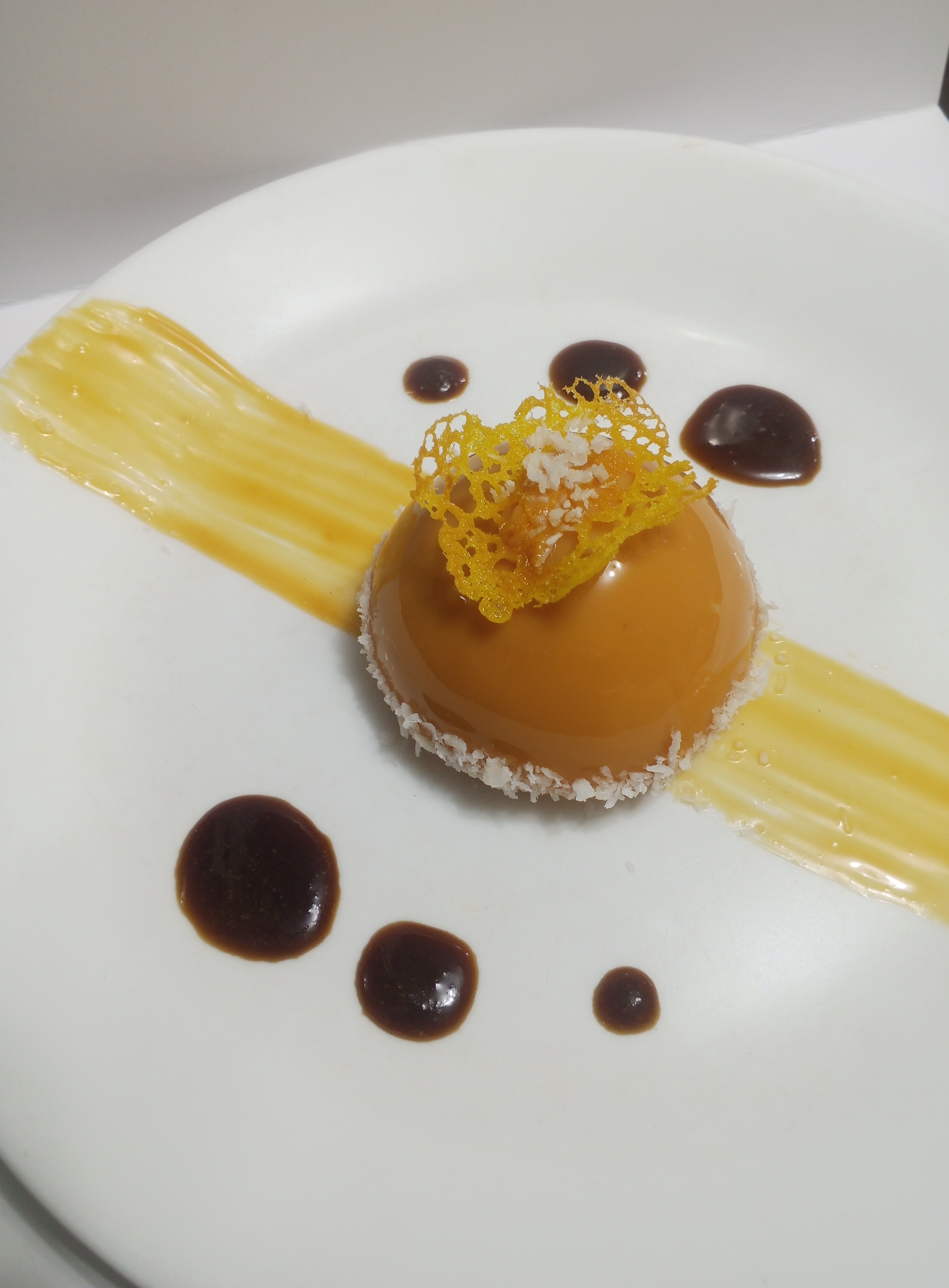 Hacemos un caramelo al seco con el azúcar y cortamos con el agua, dejamos a fuego bajo hasta eliminar los grumos.