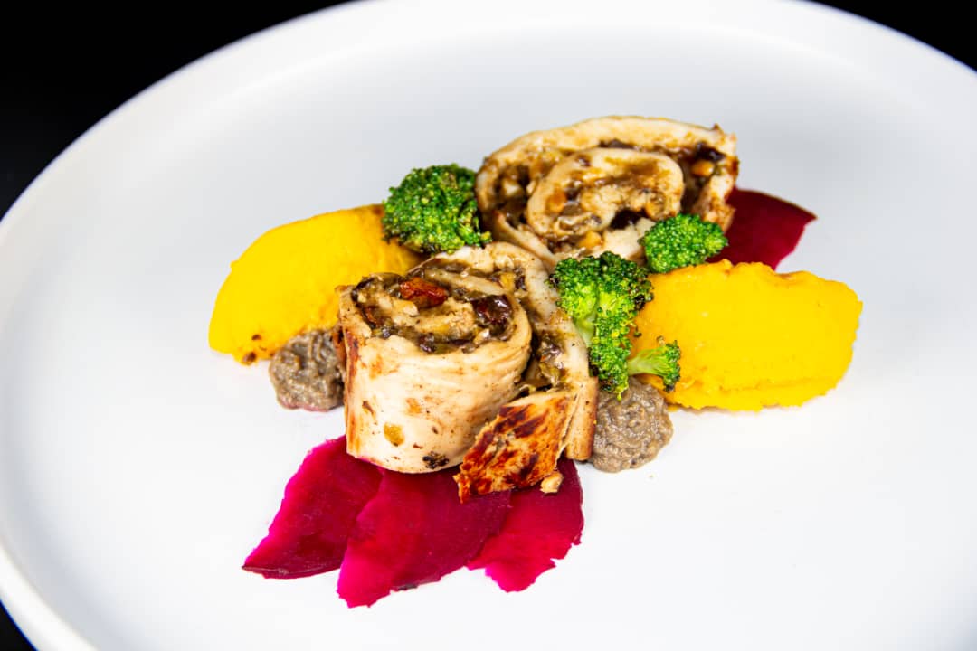 ROULADE DE POLLODeshuesar tres muslos de pollo sin romper la piel, salpimentar y reservar.