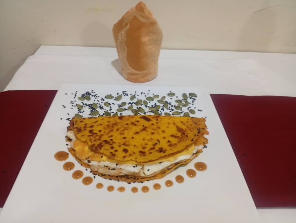 servimos y acompañamos con un huevo frito como relleno, napar o cubrir ligeramente con miel mostaza y semillas de auyama.