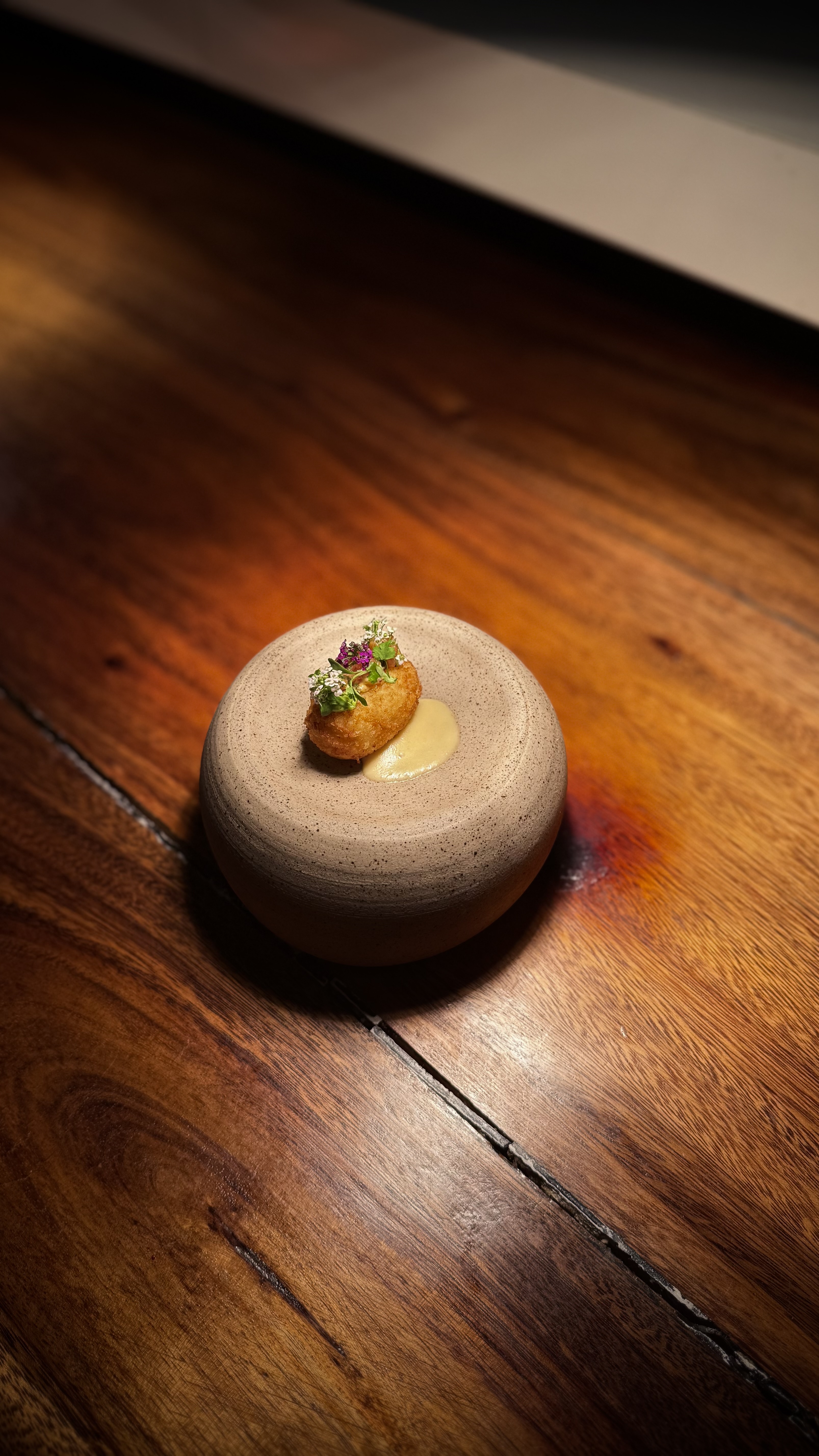 Croqueta1. Sofreír los vegetales con un poco de aceite de oliva y mantequilla, hasta caramelizarlos, agregar la leche y el fondo de pollo, hervir y reservar.